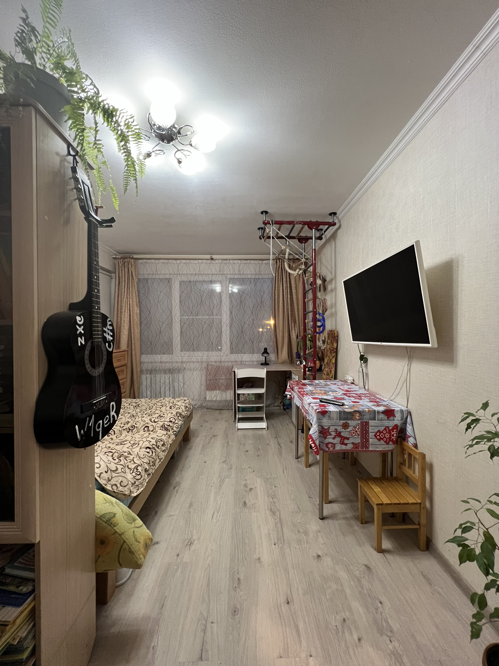 Общая площадь без учета лоджии 32 кв.м, комната 17,7 кв.м, кухня 6,1 кв.м. Потолки 2,55 м.