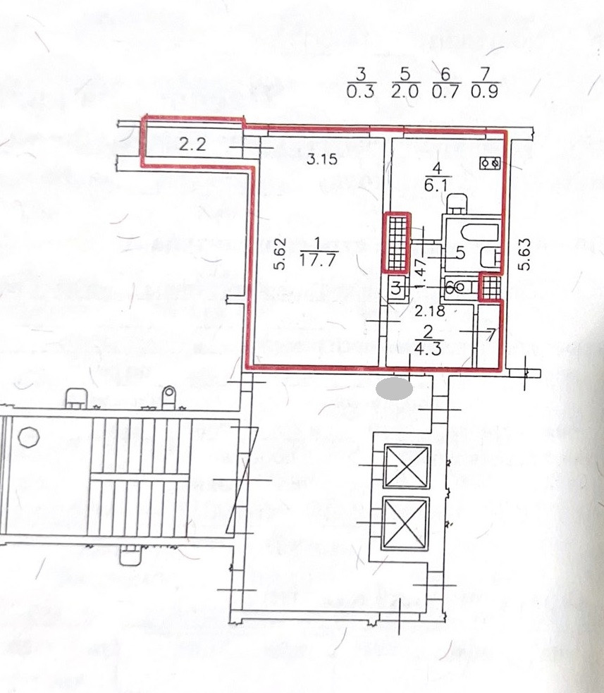 Жилая площадь 17.7 м2