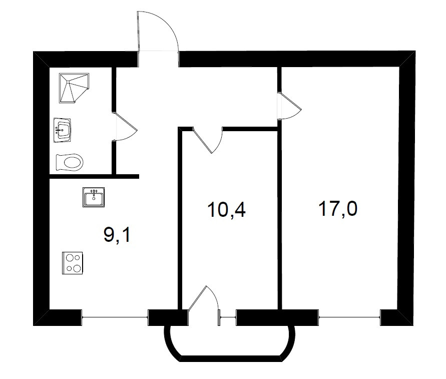 + изолированные комнаты 17 и 10,4 квадратных метра