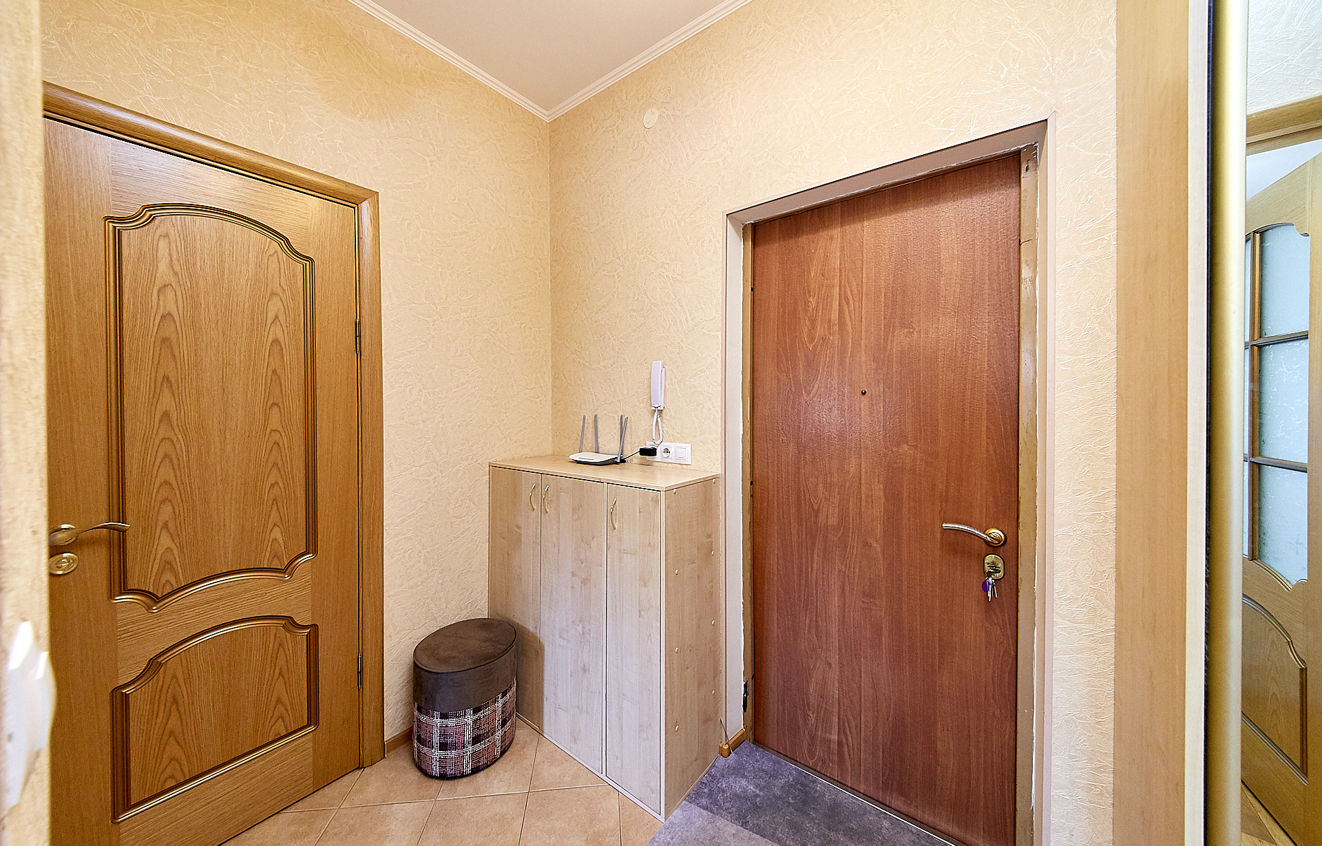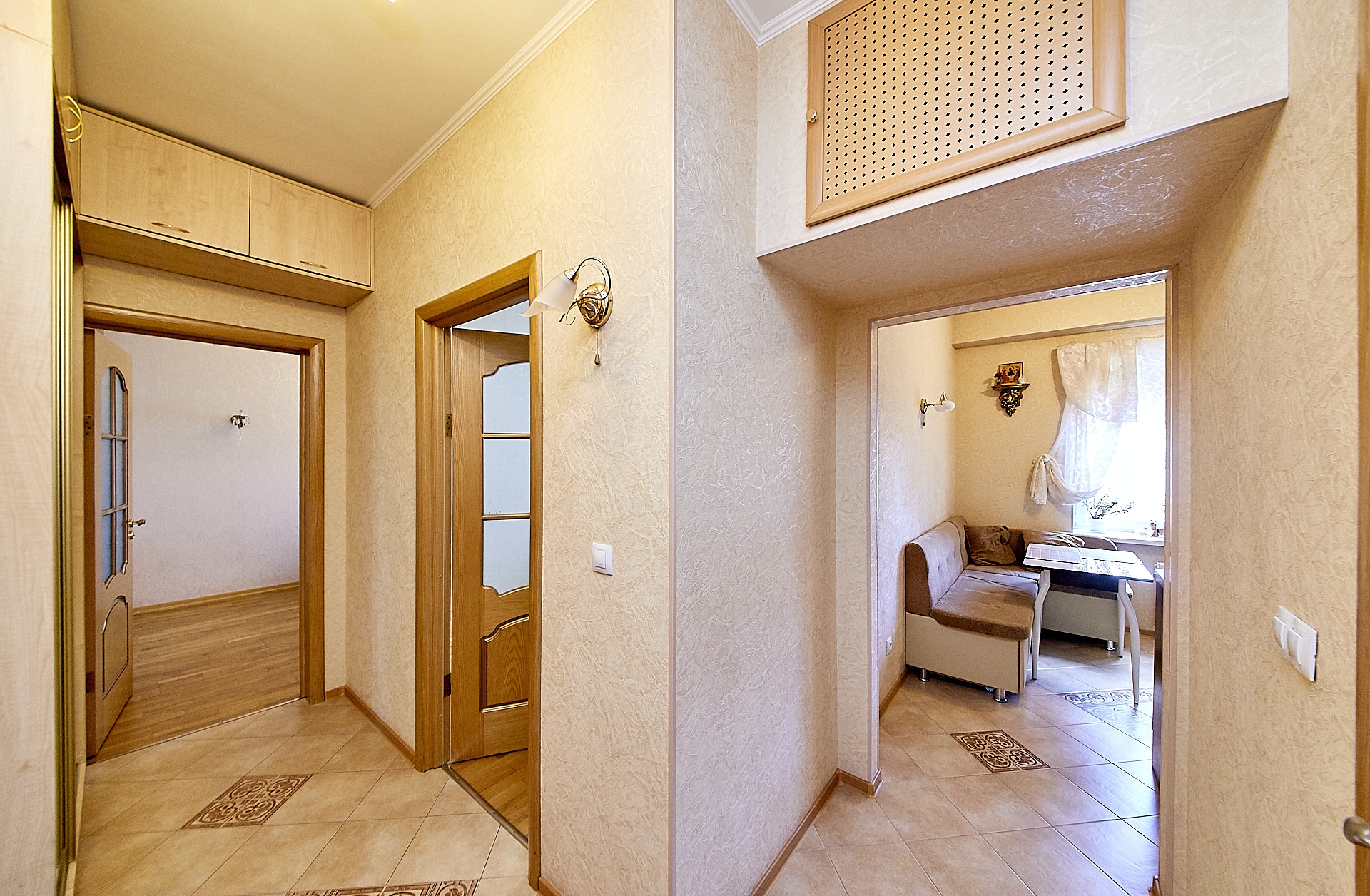 + полы выложены керамогранитом, в комнатах - паркетная доска