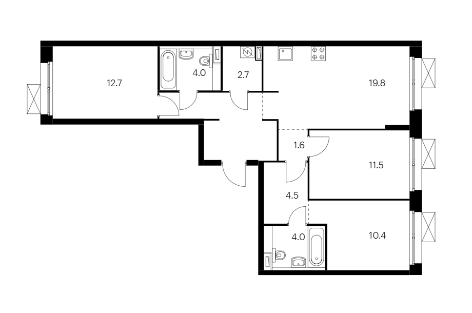 Общая площадь 80.7 м2
