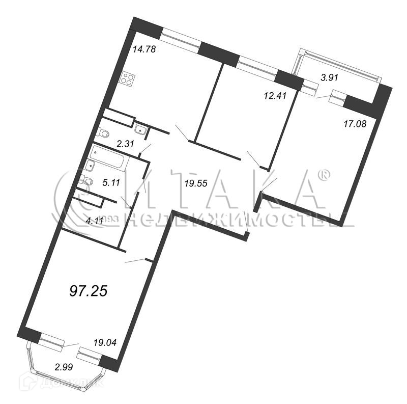 3-комнатная квартира, 97.25 м2, этаж 8 / 12, на продажу в Санкт-Петербурге, Плесецкая улица, 6