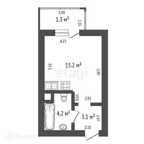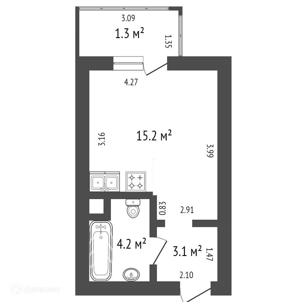Жилая площадь 15.2 м2