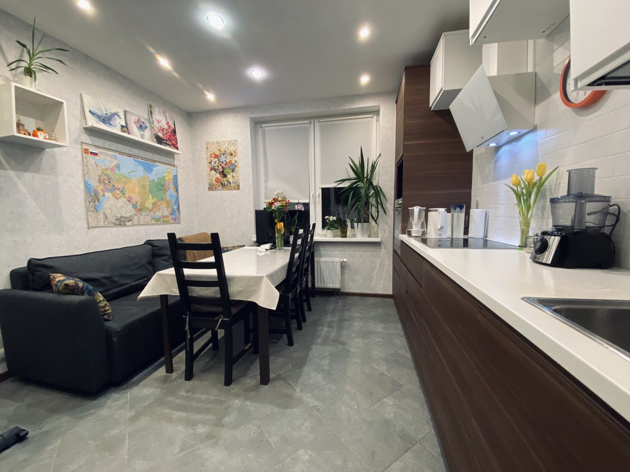 Квартира продается с кухней и встроенной техникой. Остальное по согласованию.