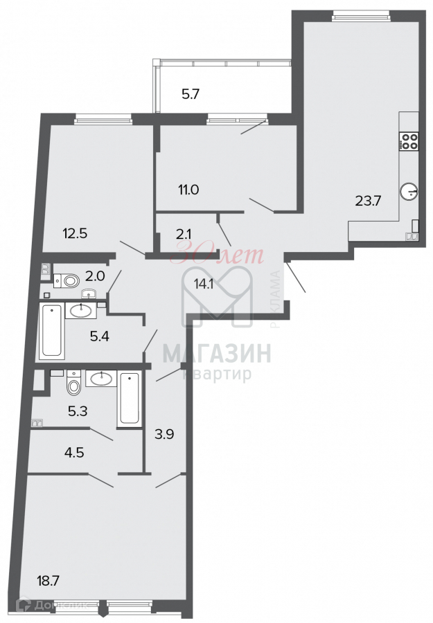 - 2 Ванные комнаты по 5,5 м2
