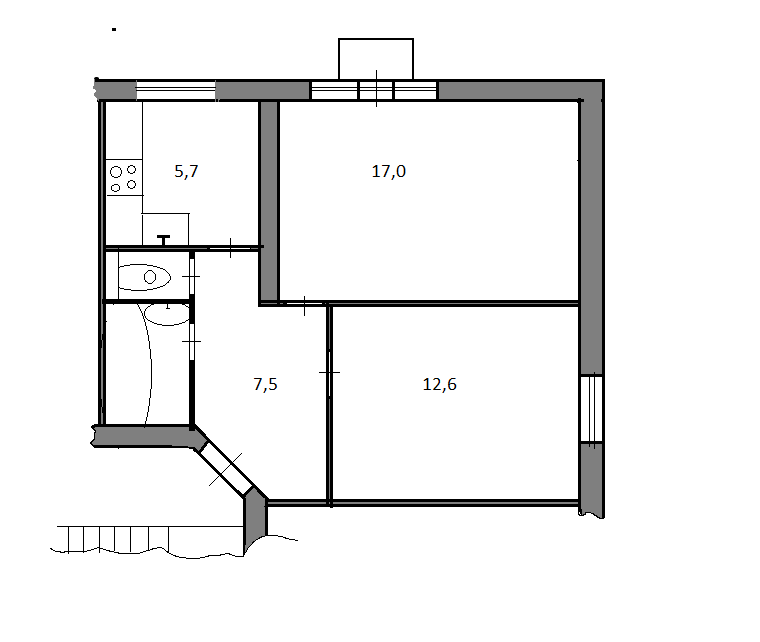 Комнаты изолированы 17 и 12,6 кв м, правильной формы, санузел раздельный, поперечная ванна 2м, высота потолка 3 м; пол в комнатах – качественный ламинат, остальные помещения – кафель.