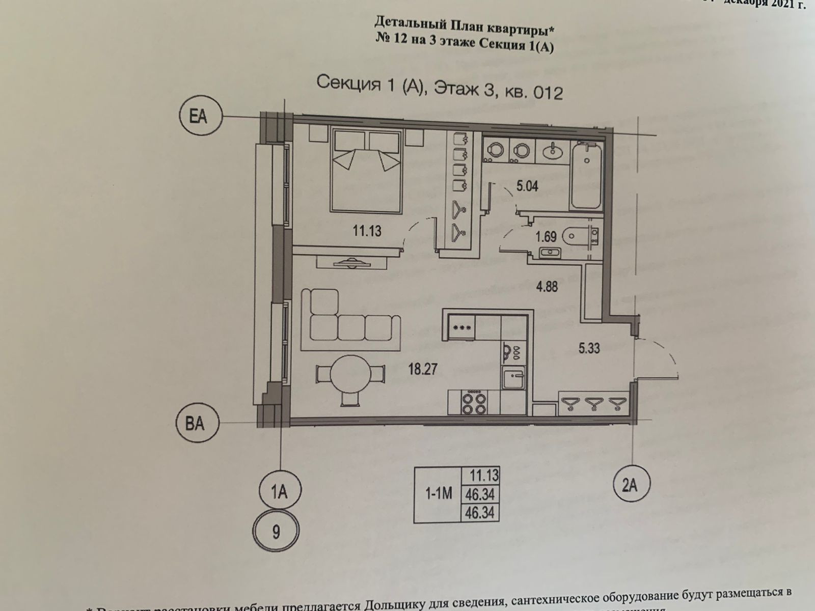 Общая площадь 46.34 м2