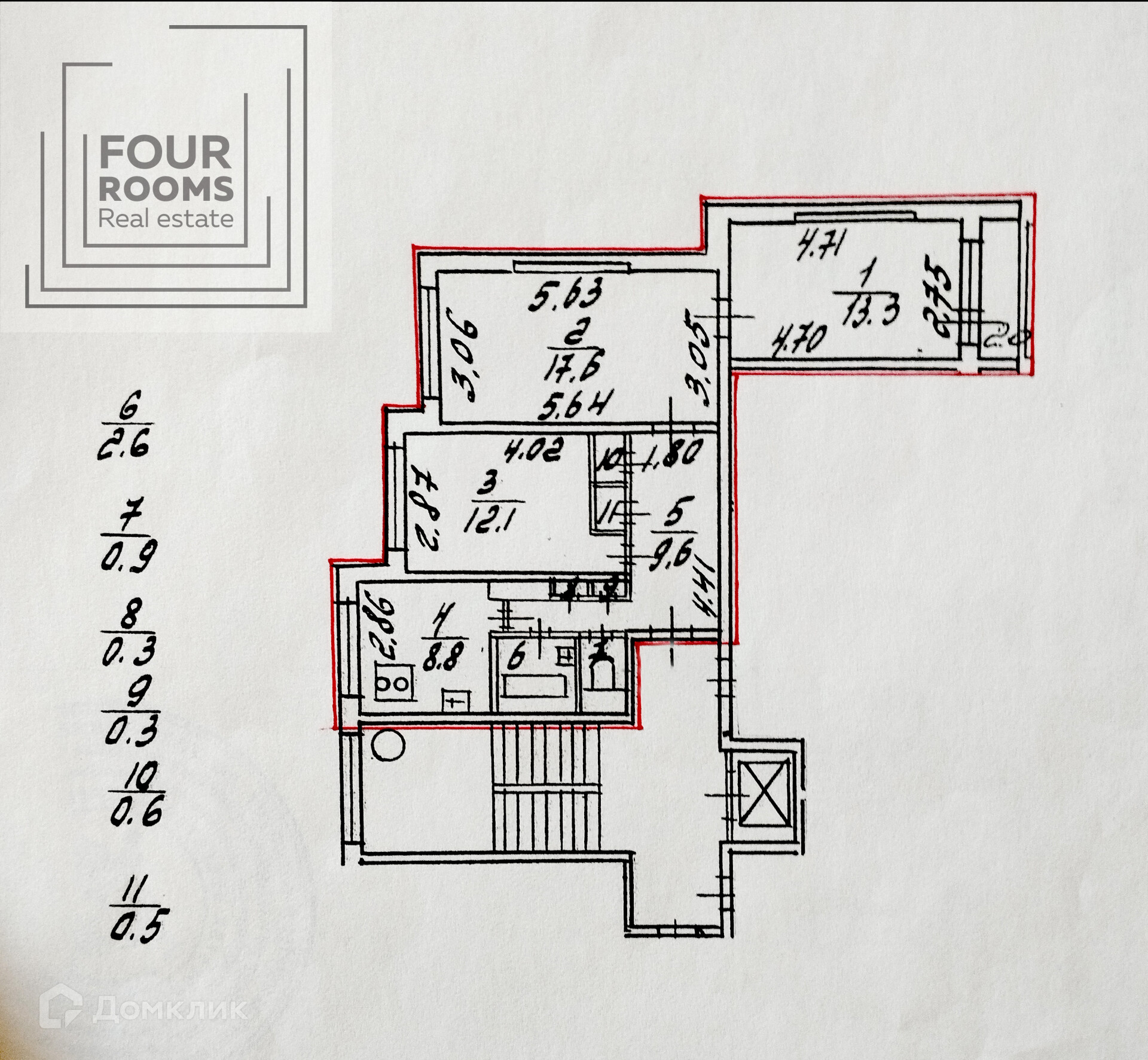 3-комнатная квартира, 67 м2, этаж 4 / 9, на продажу в Санкт-Петербурге, улица Тельмана, 43к3