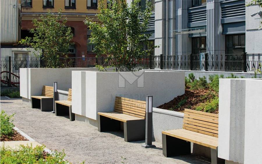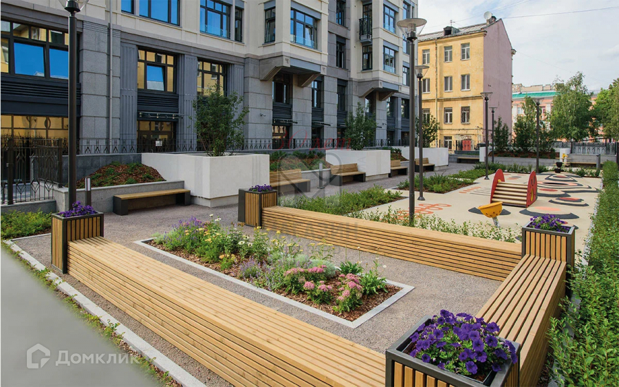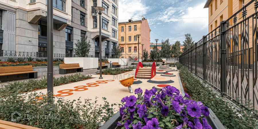 На придомовой территории расположены пешеходные дорожки и тротуары, зеленые зоны с ландшафтным дизайном, места для отдыха, детские и спортивные площадки с безопасным резиновым покрытием. Для автовладельцев предусмотрен подземный паркинг.