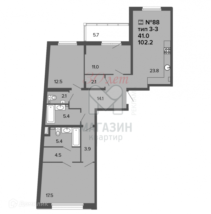 3-комнатная квартира, 105.05 м2, этаж 3 / 6, на продажу в Санкт-Петербурге, 11-я Красноармейская улица, 11с3
