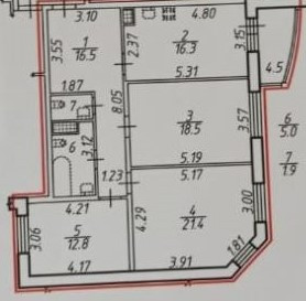 Общая площадь 92.3 м2