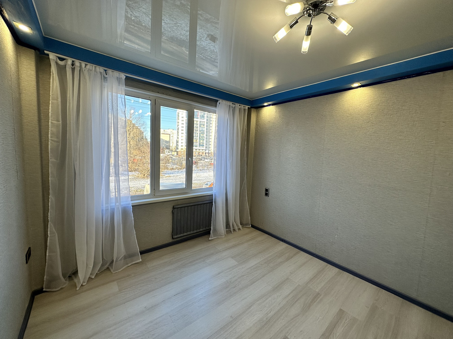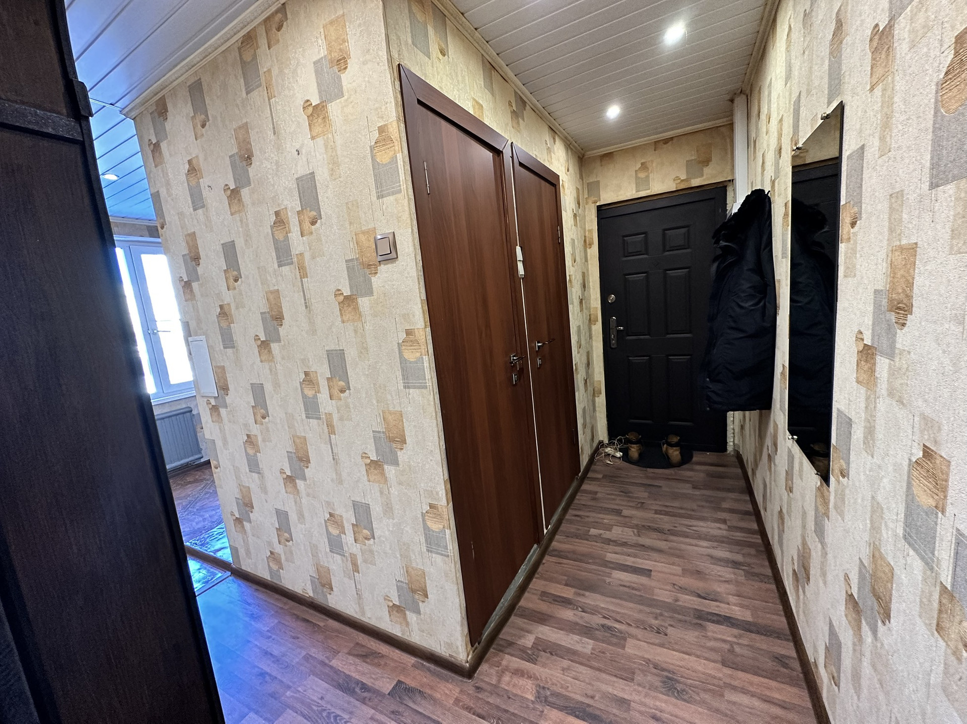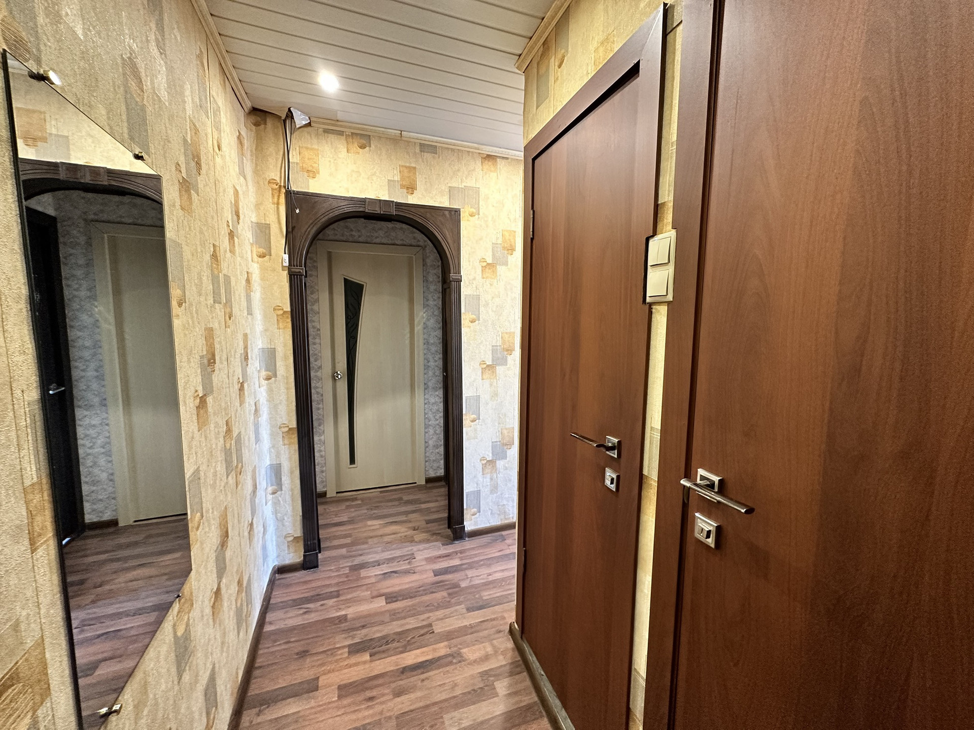 В квартире сделан косметический ремонт - заезжай и живи. Окна поменяны на стеклопакеты, на полу в комнатах ламинат. Все трубы заменены на пластиковые, заменена вся электропроводка. Покупателю остаётся функциональная кухня и шкафы для хранения вещей в гардеробной.
