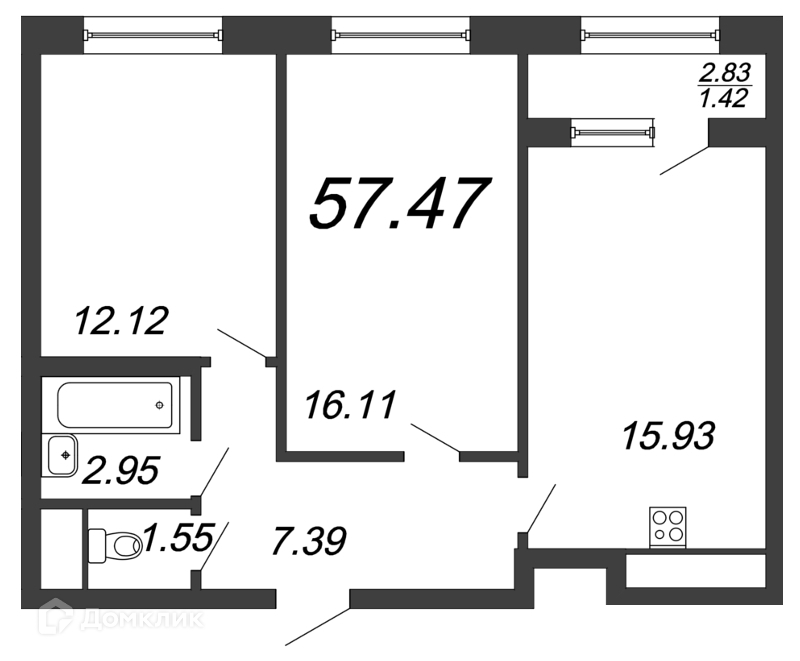 Общая площадь 56.1 м2