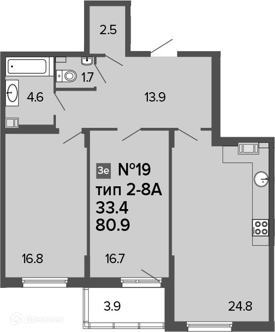 Общая площадь 80.9 м2
