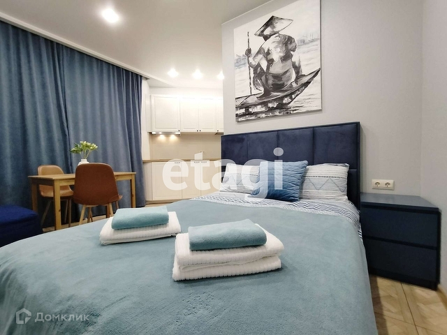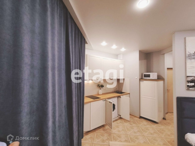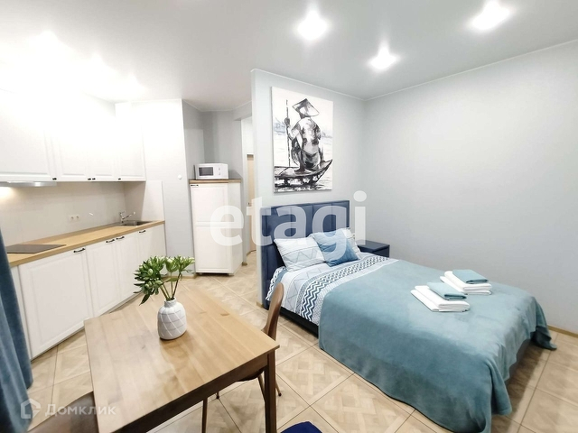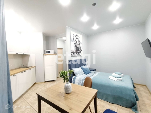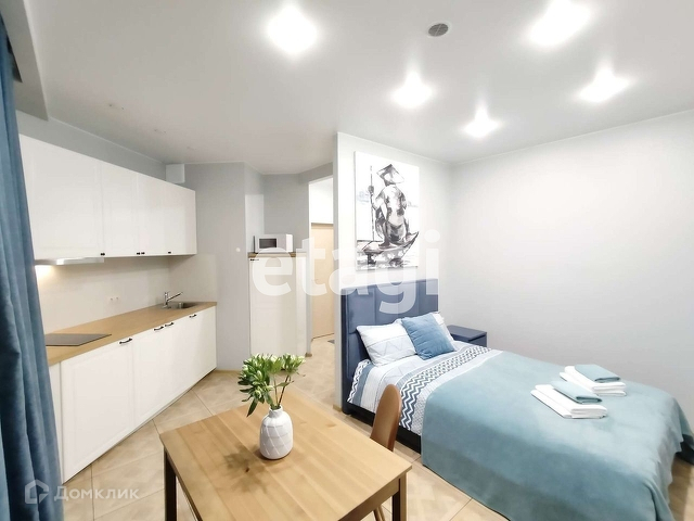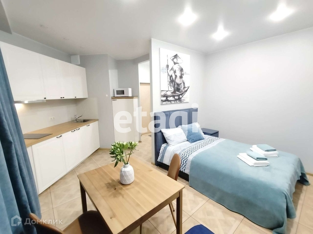 Продается квартира - студия в ЖК Город мастеров. Свежий ремонт 2022 года: покрашены стены, на полу керамогранит, натяжной потолок, точечные светильники, выведены дополнительные розетки. В квартире современная и новая мебель:обеденный стол и стулья, кухонный гарнитур Икея,двуспальная кровать Аскона, ортопедический матрас,электрическая керамическая панель на две комфорки, вытяжка, встроенный холодильник, микроволновая печь, шкаф в прихоже, водонагреватель на 50 литров. Удобная локация: в пешей доступности автобусная остановка, ближайшая станция метро Лесная - на автобусе - 10 минут, пешком - 25 минут.