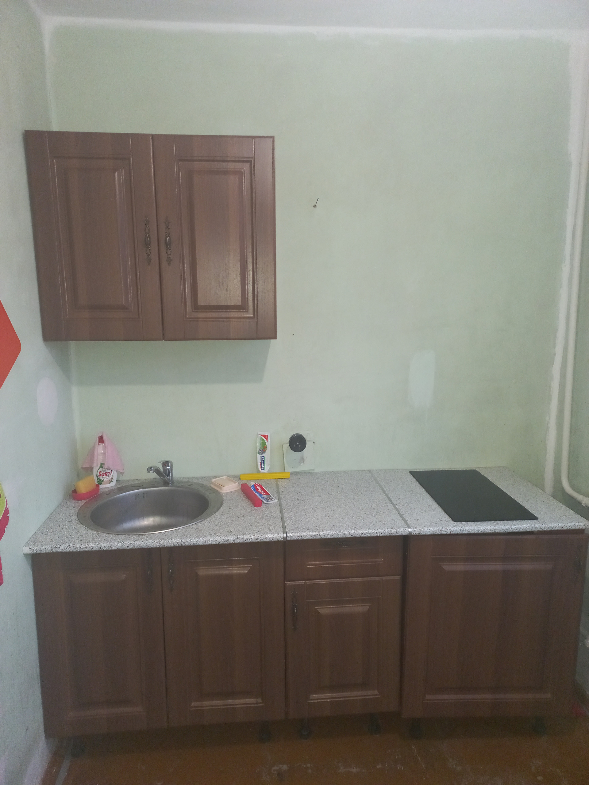В подарок отдам кухонный гарнитур с электрической встраиваемой сенсорной варочной поверхностью, электрической вытяжкой.