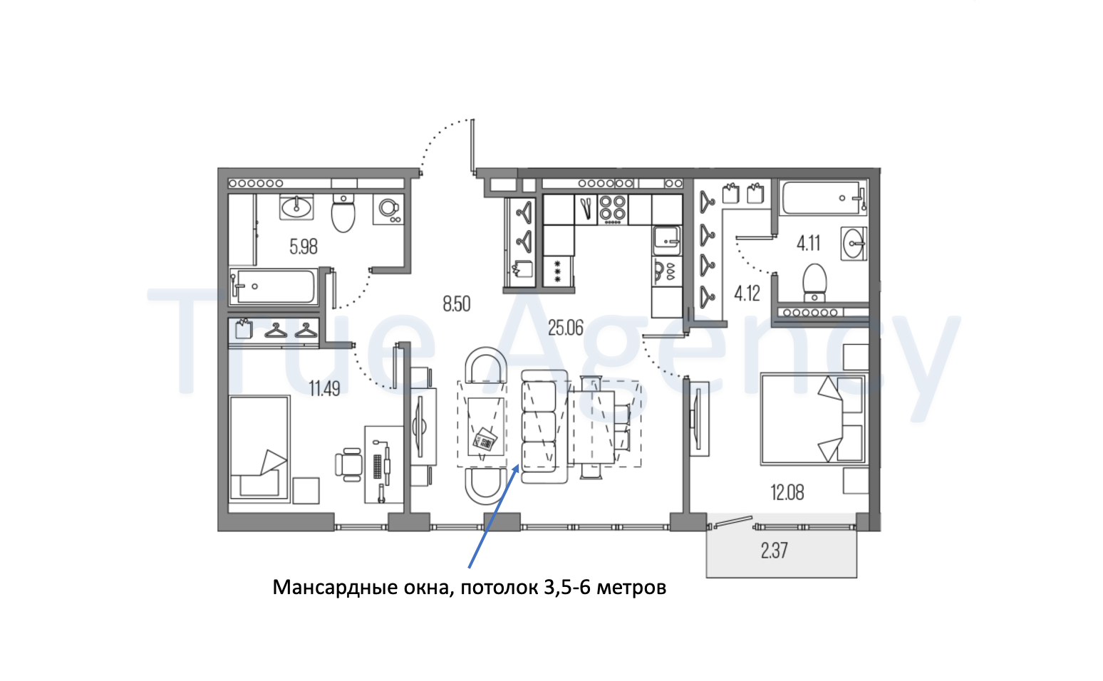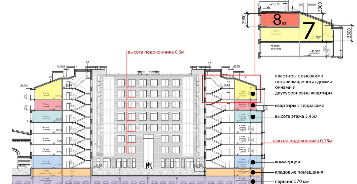 Продается уникальная квартира с панорамными + мансардными окнами и высотой потолка от 3,5 метра до 6 метров. У вас будет возможность организовать второй свет.