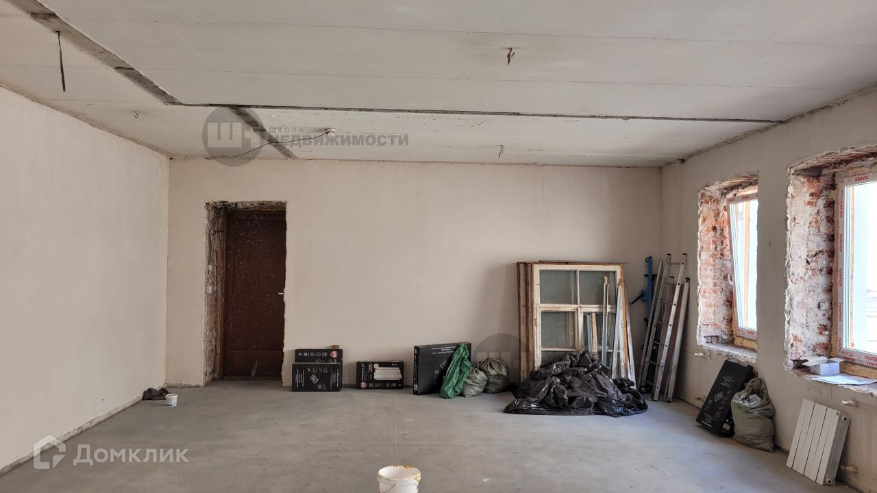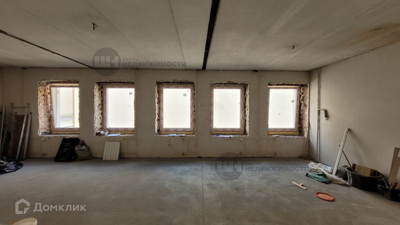 В квартире произведен демонтаж перегородок, пола и потолка, установлены стеклопакеты.