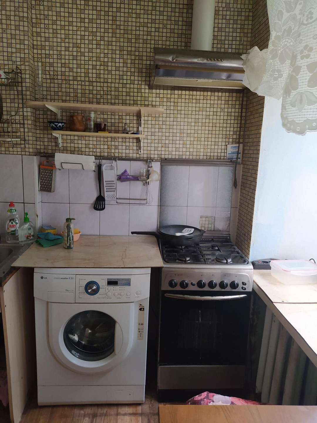 Кухня 6,1м². Раздельный санузел. Газовая колонка.  Из окна вид на сад ,колокольню Владимирского собора и сам собор.