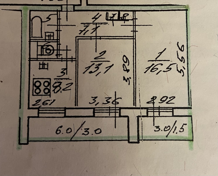 Жилая площадь 29.6 м2