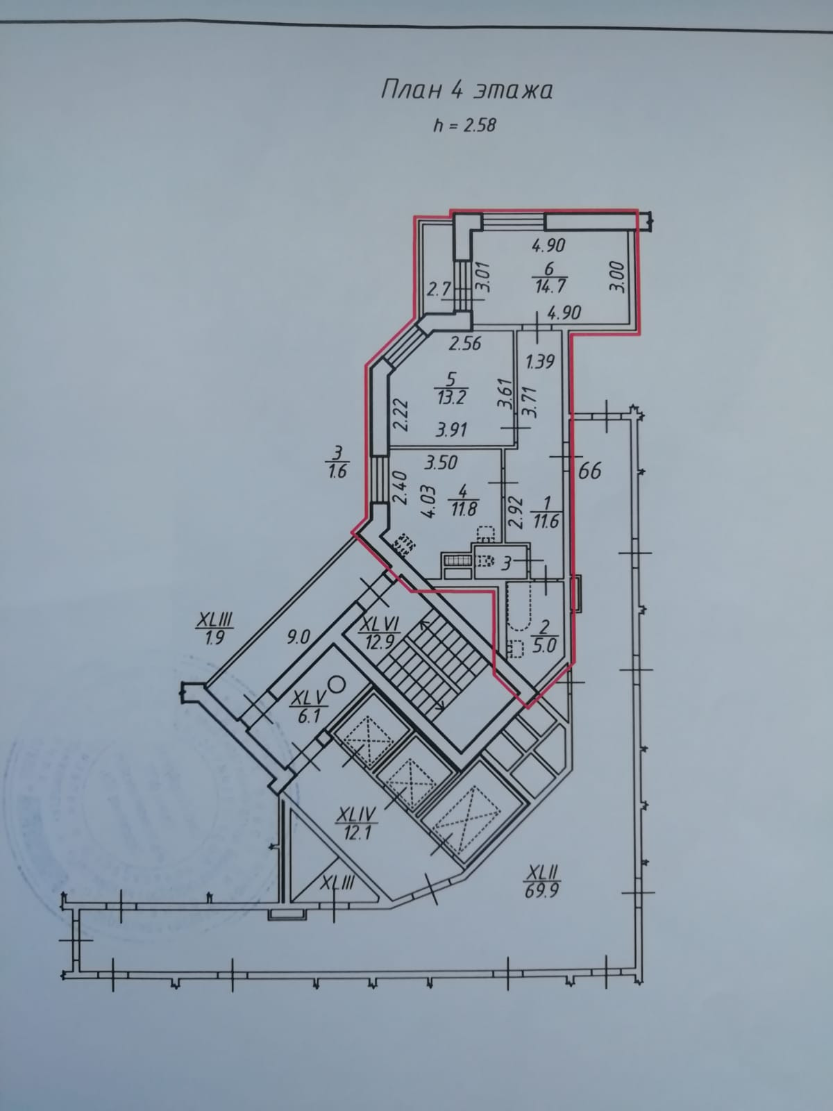 Высота потолков 2.58 м