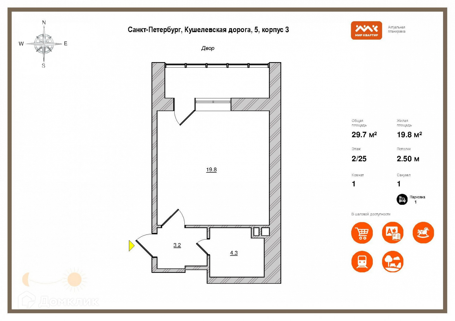 Квартира студия, 30 м2, этаж 2 / 25, на продажу в Санкт-Петербурге, Кушелевская дорога, 5к3