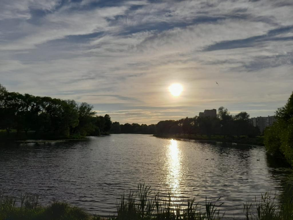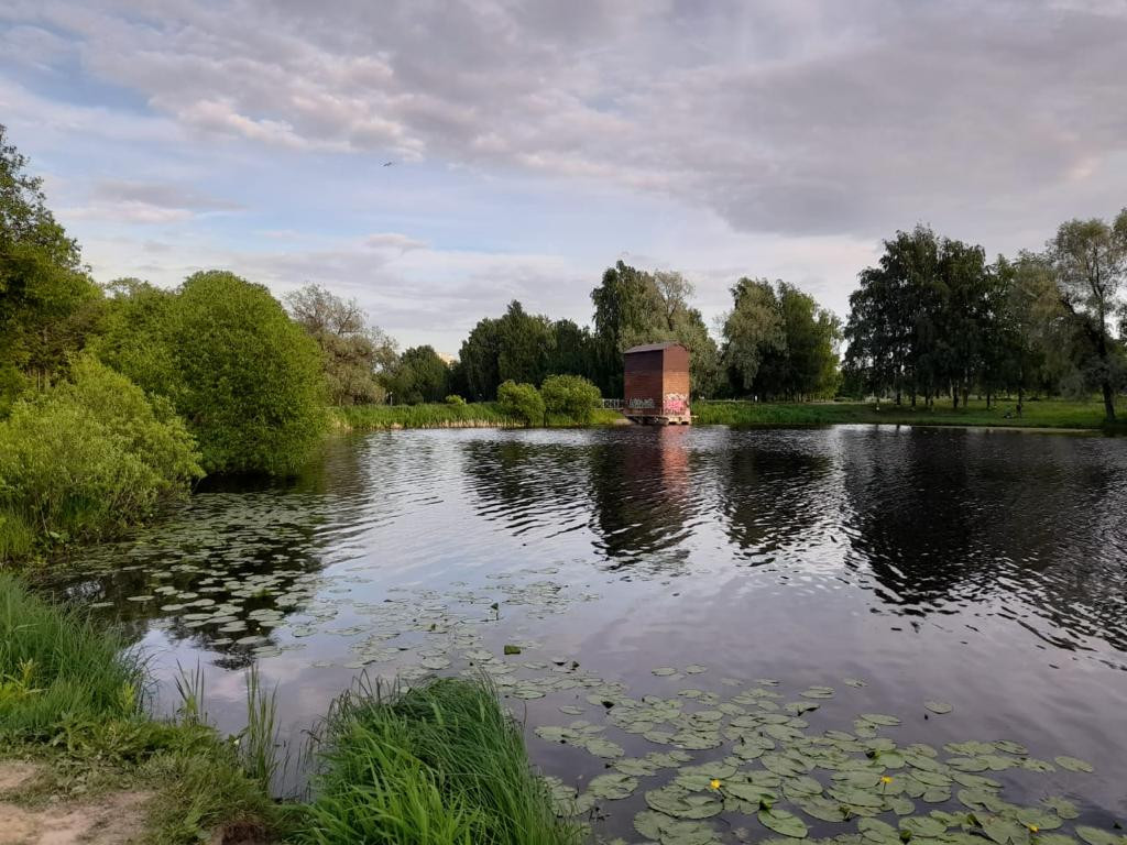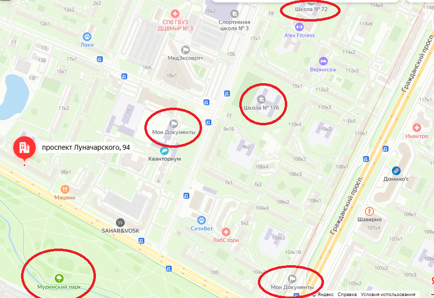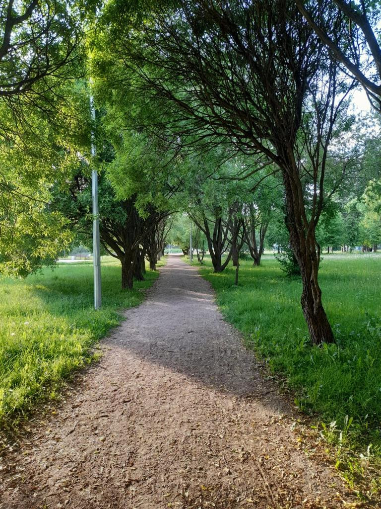 Хороший вид из окон на зеленый двор и Муринский парк.