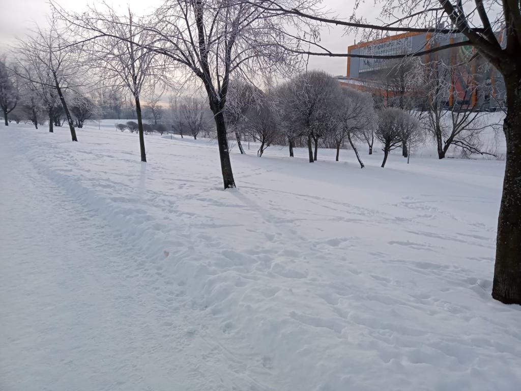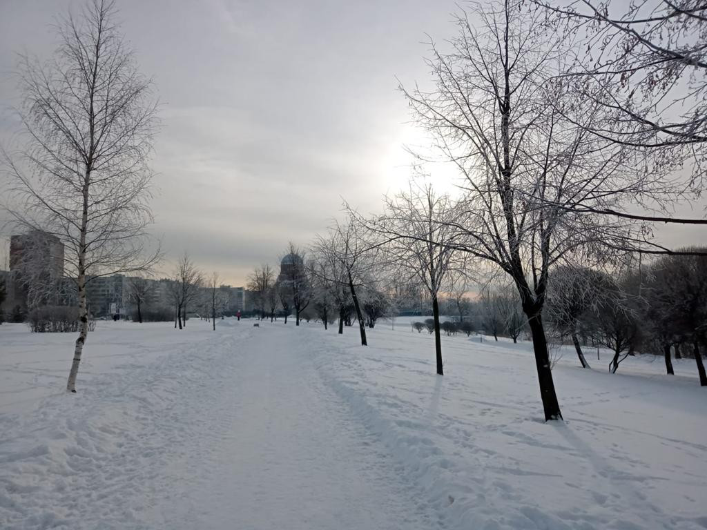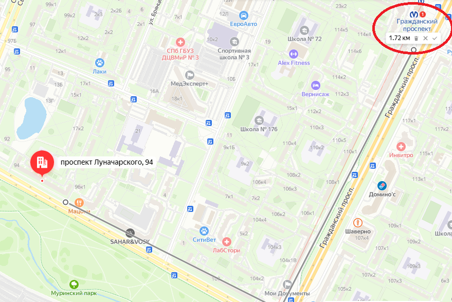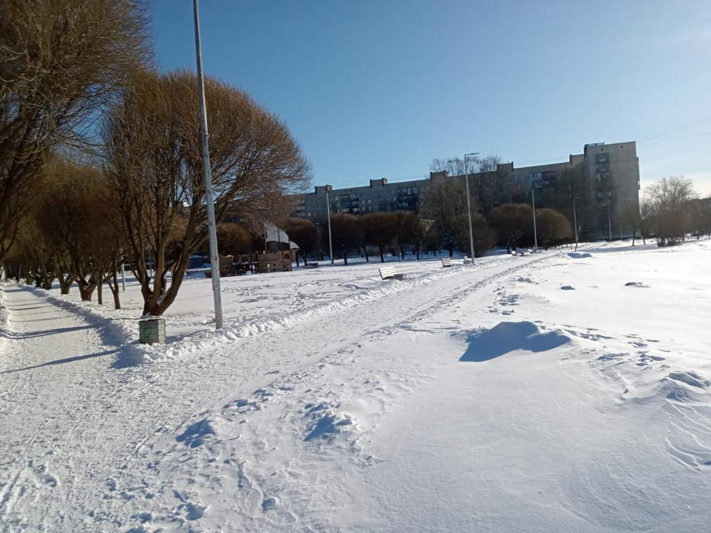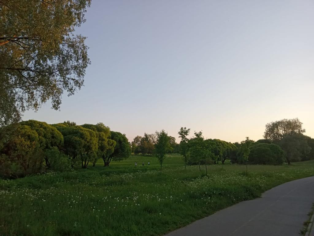 Хороший вид из окон на зеленый двор и Муринский парк.