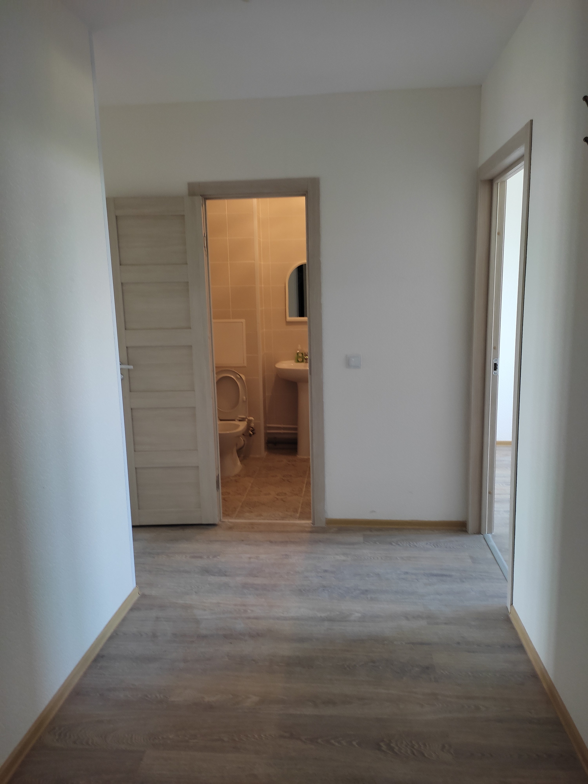 Квартира с чистовой отделкой: ламинат, обои под покраску, межкомнатные двери, установлена вся сантехника, в санузлах положена плитка, установлены счетчики (ХВС, ГВС, ЭЭ, отопление). Заезжай и живи, не нужно никаких вложений.