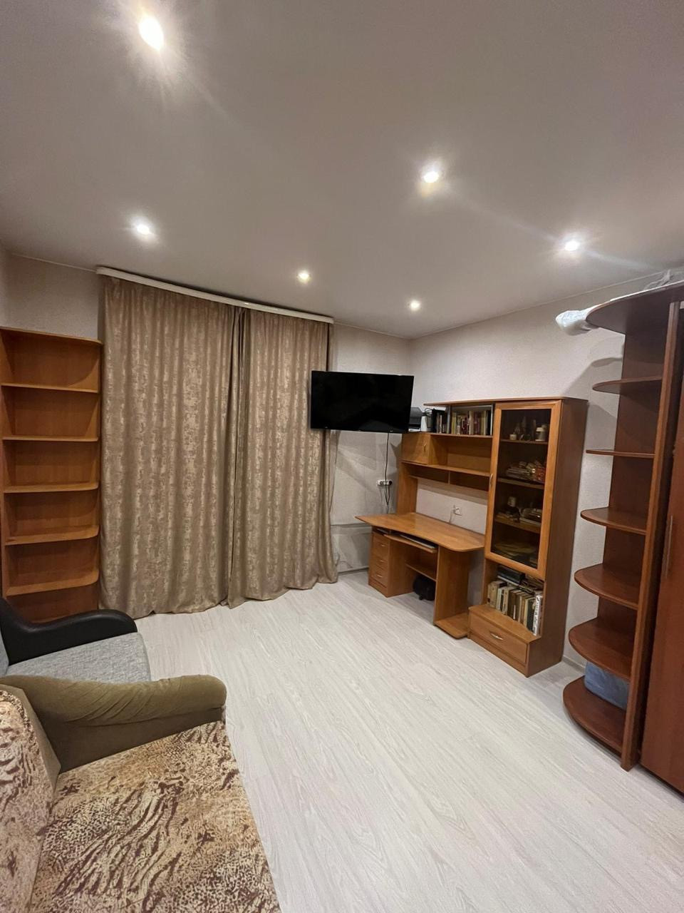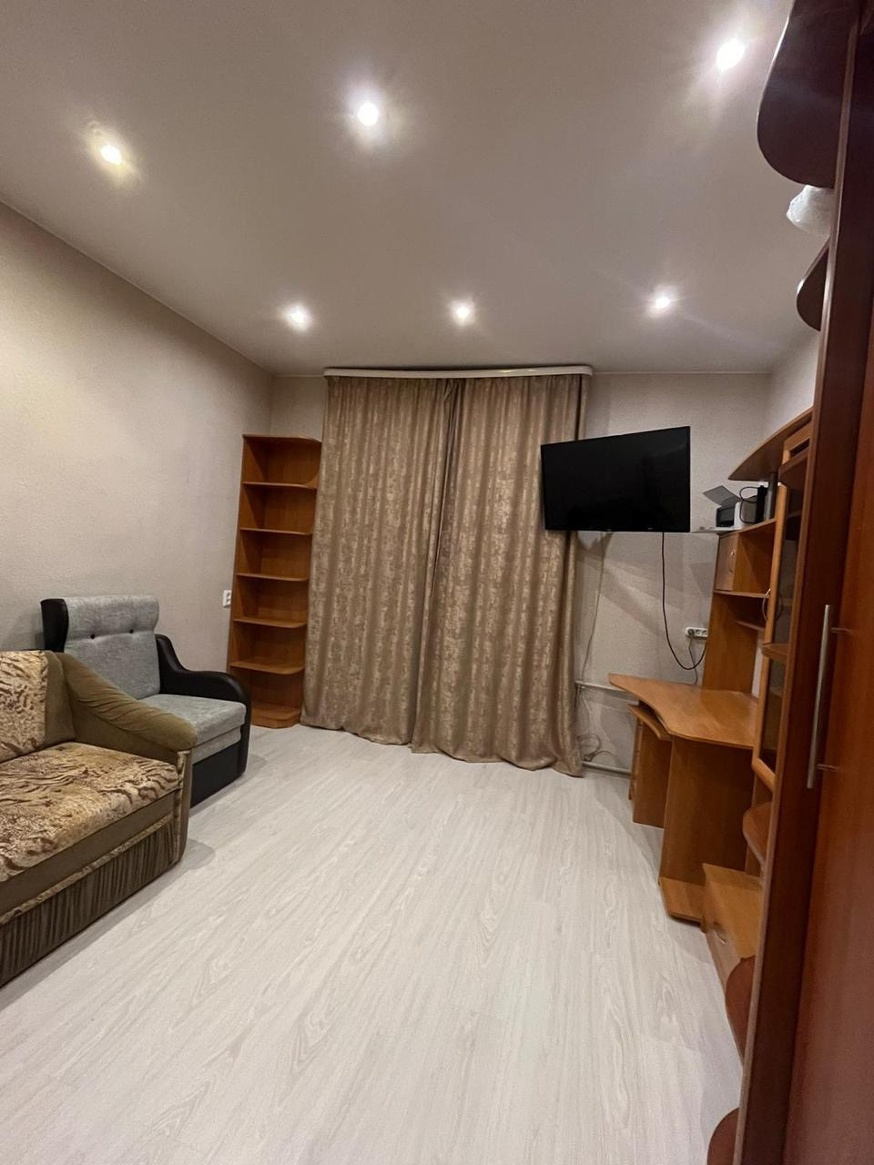 Хорошая светлая комната с видом во двор, что обеспечивает тишину. Окна квартиры выходят на солнечную сторону. Квартира сразу готова к проживанию. На окнах стоят новые хорошие стеклопакеты. На кухне зимой теплый пол от отопления(!)