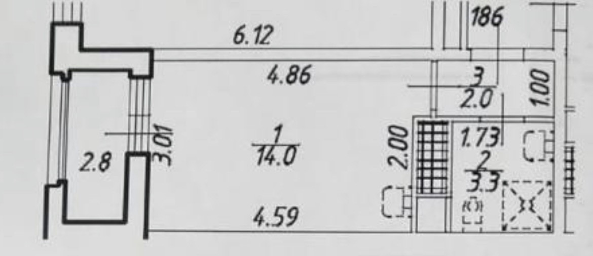 Балкон, лоджия 1 балкон