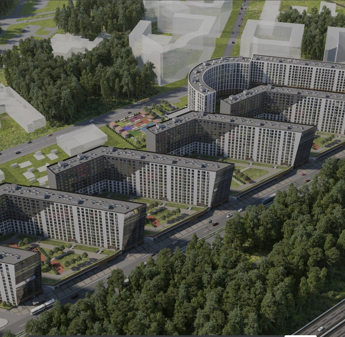New Time находится фактически у леса, однако при этом обладает всей необходимой инфраструктурой для комфортной городской жизни.