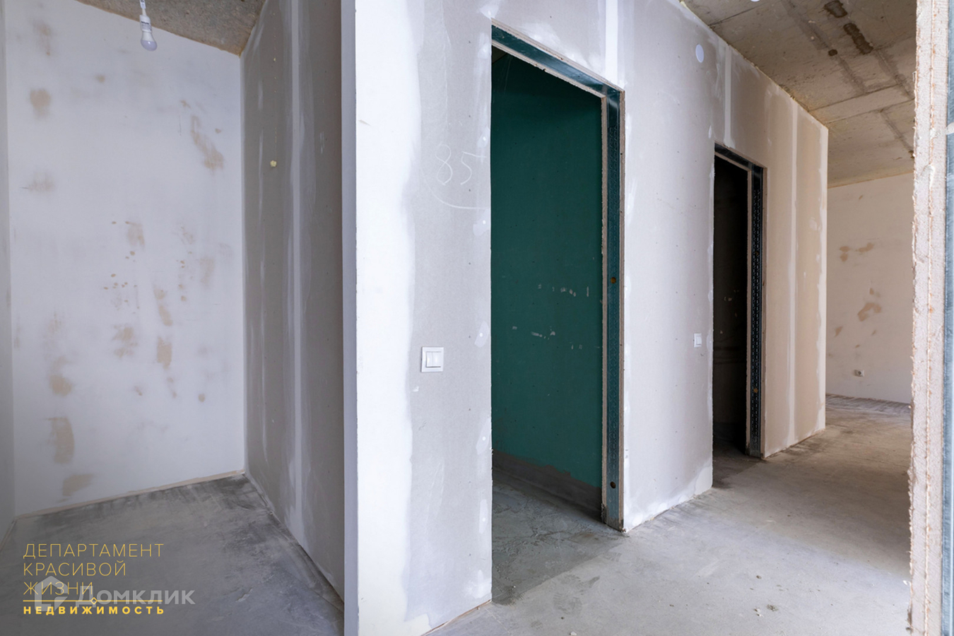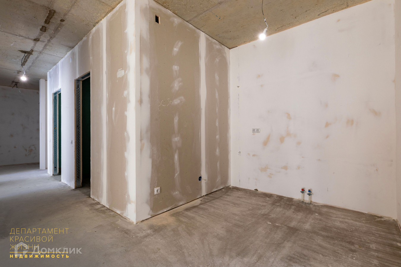Сделана стяжка пола, устройство гидроизоляции пола в ванной, установлены счетчики воды и электричества, розетки и выключатели, электропроводка.