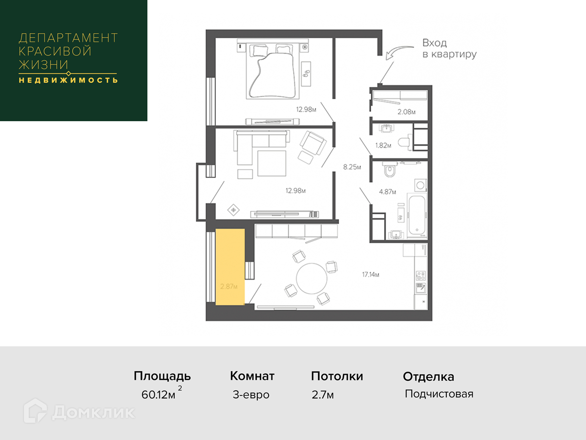 Общая площадь 60.12 м2