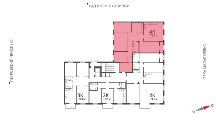 4-комнатная квартира, 175.5 м2, этаж 5 / 9, на продажу в Санкт-Петербурге, Петровский проспект, 9