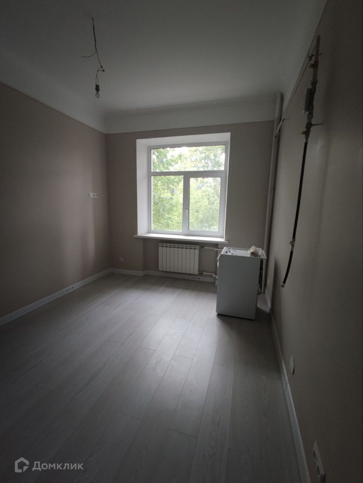 Заменены окна, установлена металлическая дверь. Ламинат, стены выведены под покраску, санузел-кафель, весь фаянс установлен. Оштукатуренные потолки. Сделаны выводы под стиральную машину, на кухне-новая плита.
