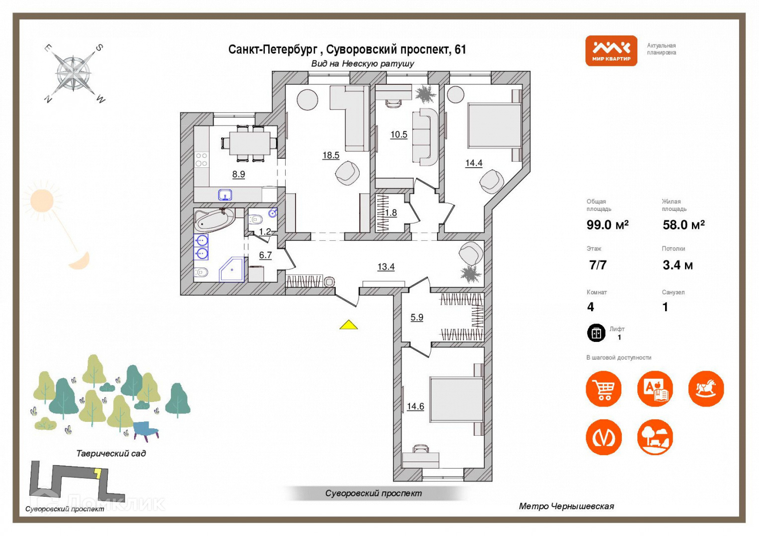 -Таврический сад в шаговой доступности