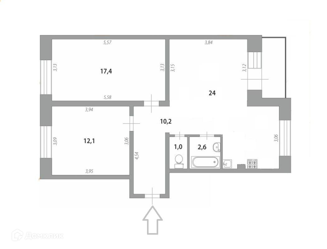 2-комнатная квартира, 64.7 м2, этаж 9 / 14, на продажу в Санкт-Петербурге, улица Латышских Стрелков, 5к2