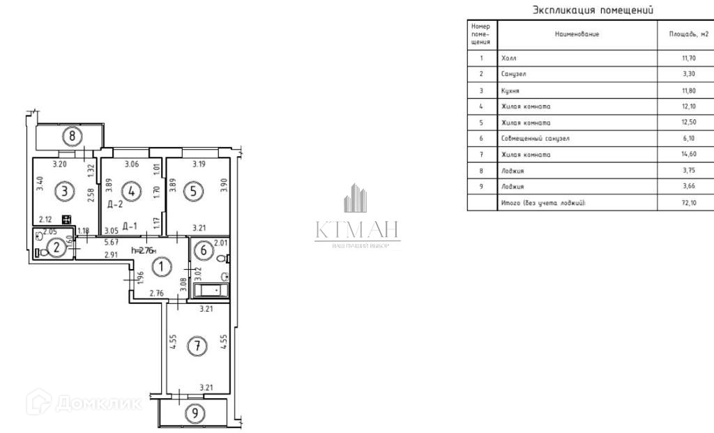 Общая площадь 79.8 м2