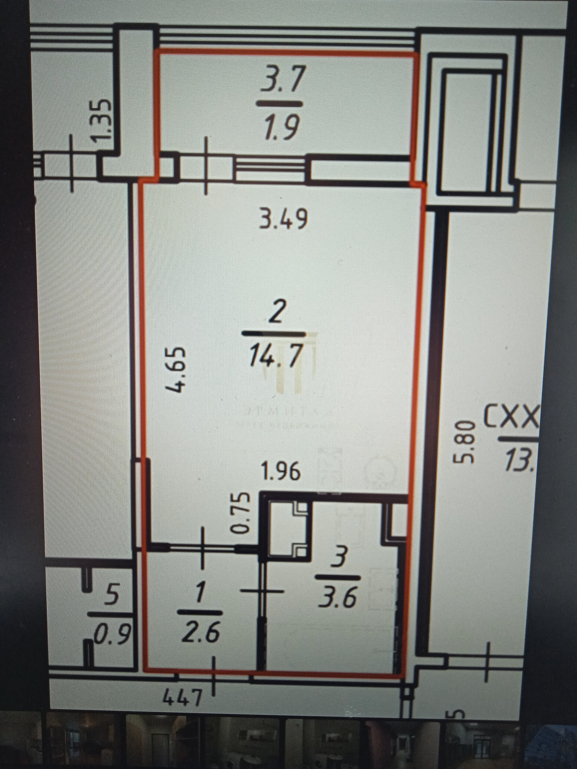 Балкон, лоджия 1 балкон