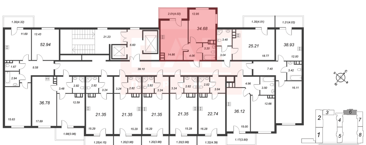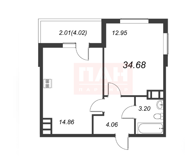 Общая площадь 34.7 м2