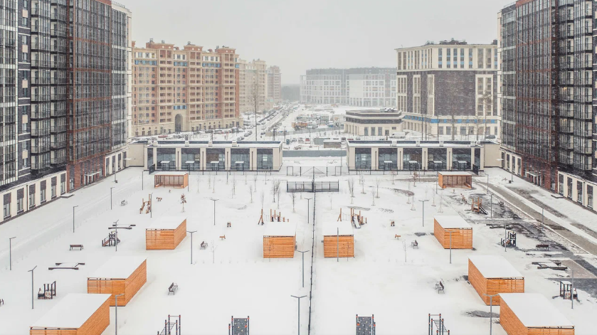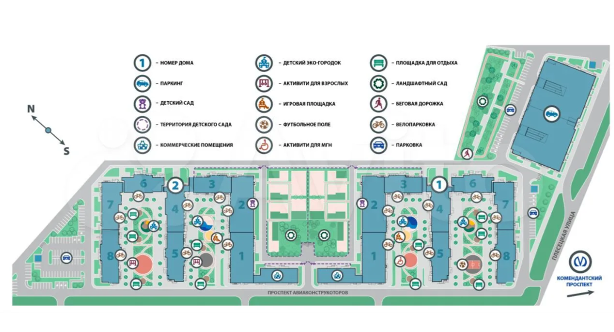 У каждого подъезда спроектированы велопарковки. Территория комплекса "Полис Приморский " благоустроена, на ней выполнено озеленение и устроен ландшафтный сад. Во дворах спроектированы детские и спортивные площадки для разного возраста, установлены скамейки для отдыха. По периметру комплекса и в местах общего пользования ведется круглосуточное видеонаблюдение. На первых этажах расположились коммерческие помещения.