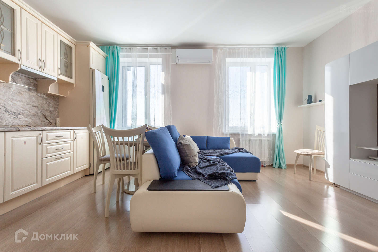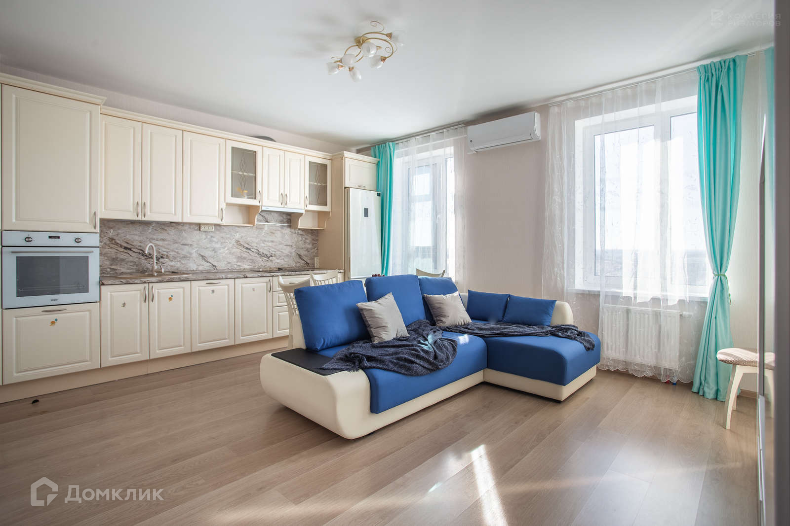 О квартире : выполнен качественный ремонт с привлечением европейских строительных и отделочных материалов.Весь интерьер выдержан в едином стиле. Кухня-гостиная( 22,7м.кв.) комфортно разделена на две зоны. Из окон открывается великолепный вид на перспективу проспекта Народного Ополчения. Квартира очень теплая и солнечная.