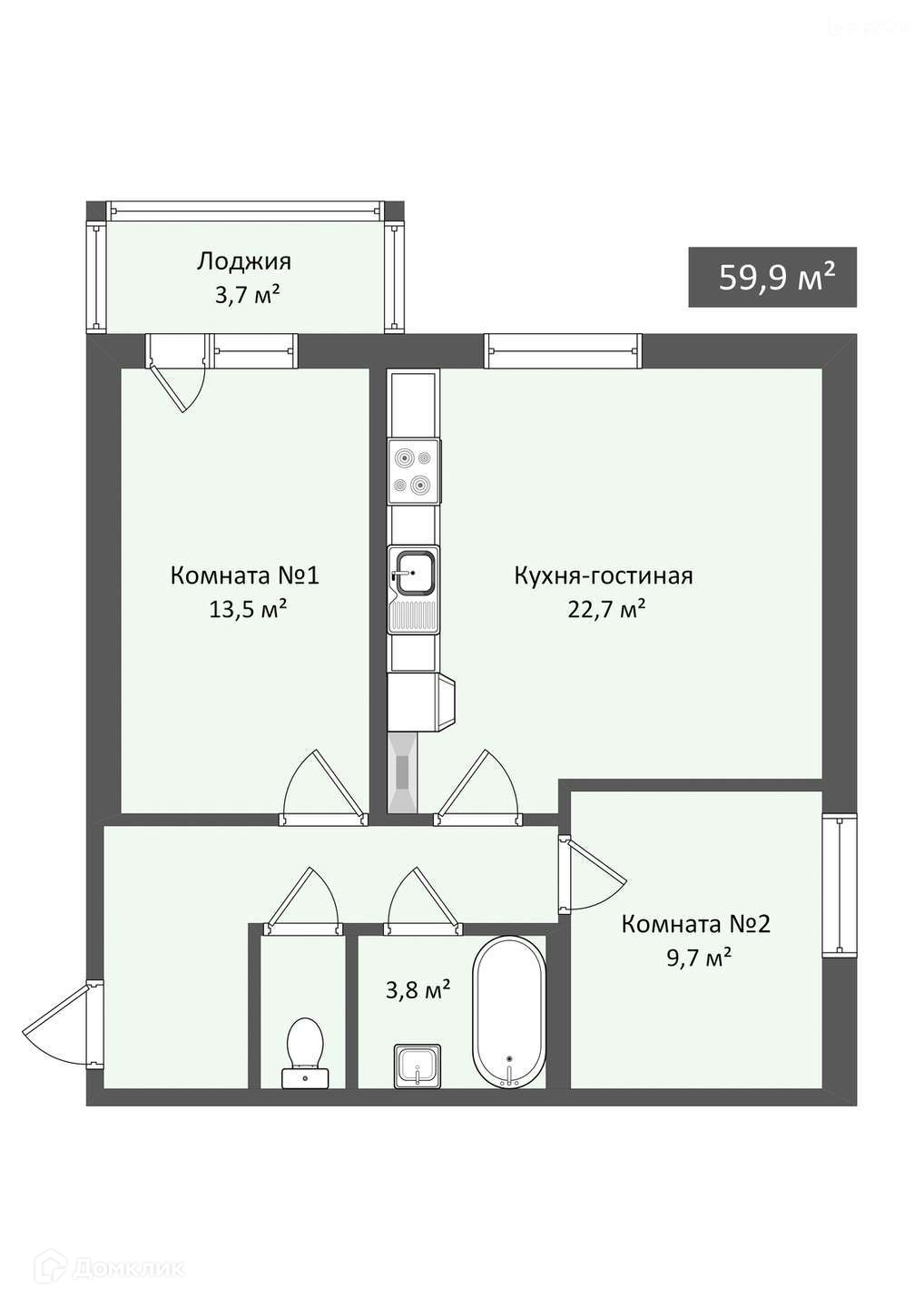 Общая площадь 59.9 м2