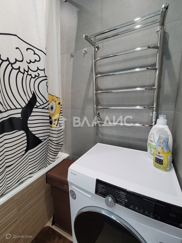 Раздельный санузел с чугунной ванной и душевой системой AM. PM с термостатом от немецкого производителя, инсталляция GEBERIT и унитаз марки AM. PM, стиральная машина с сушкой Weissgauff, полотенцесушитель.
