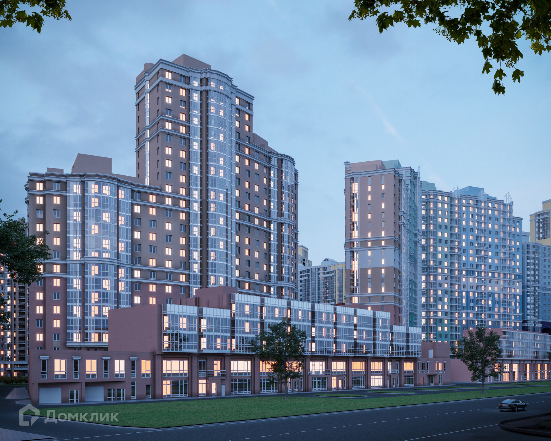 В состав комплекса помимо жилых корпусов со встроенными коммерческими помещениями входят: