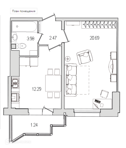 Общая площадь 43 м2