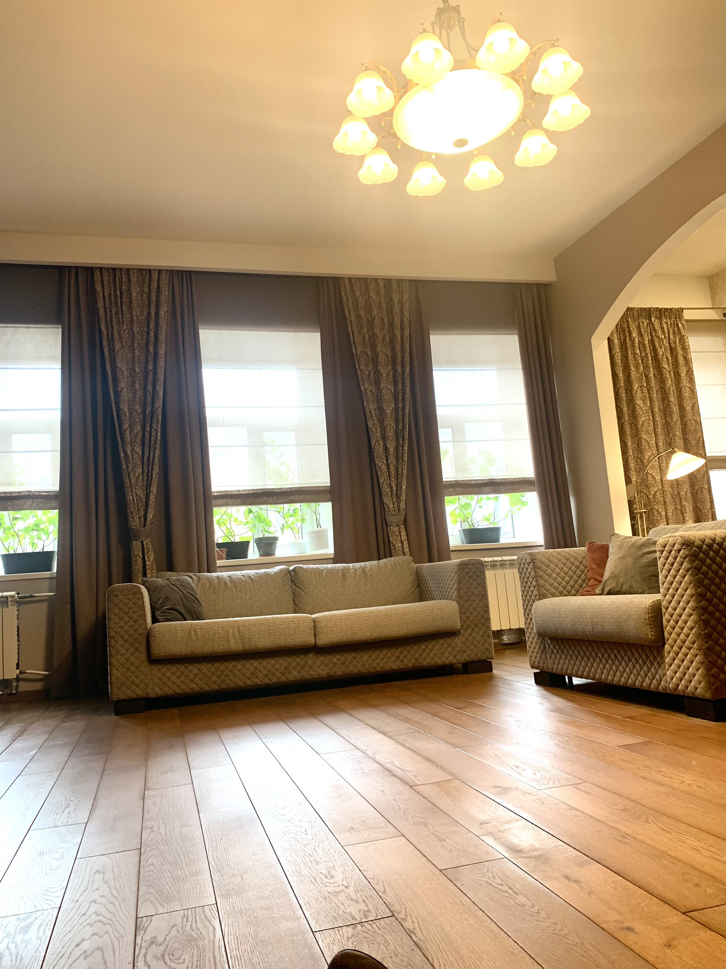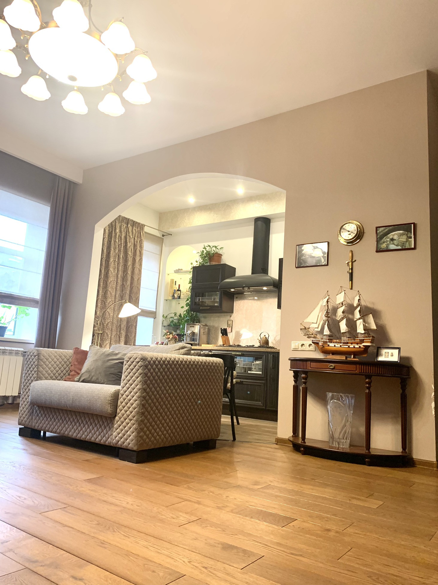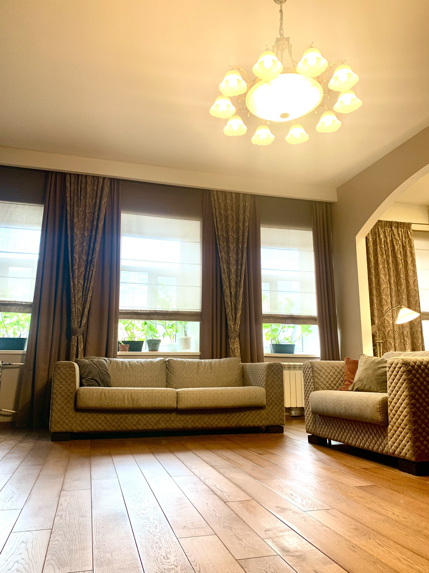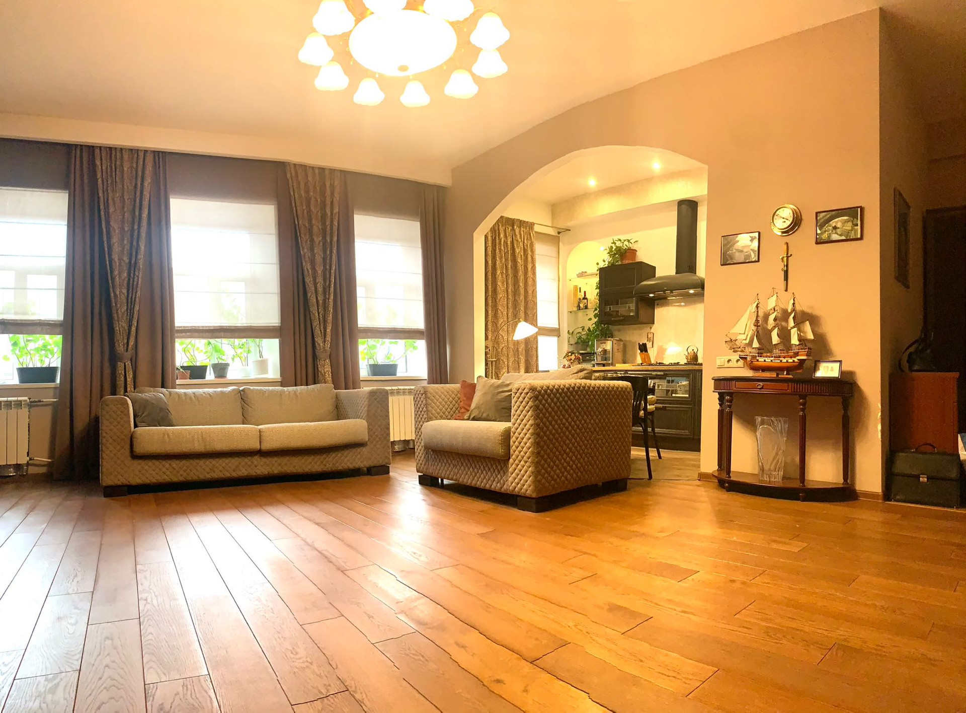 Высокие потолок, большие окна , грамотное освещение в квартире - все это создает уют и комфортное проживание.