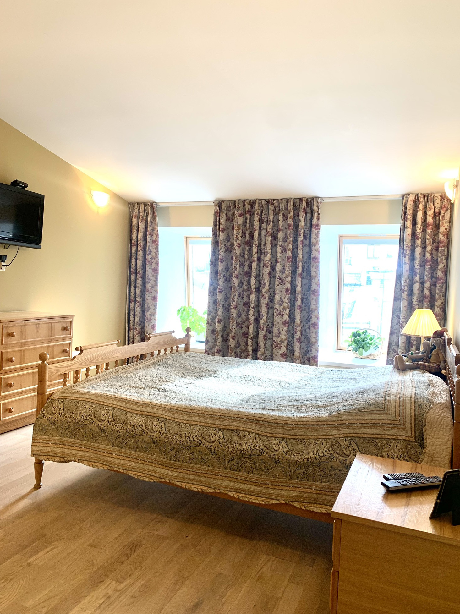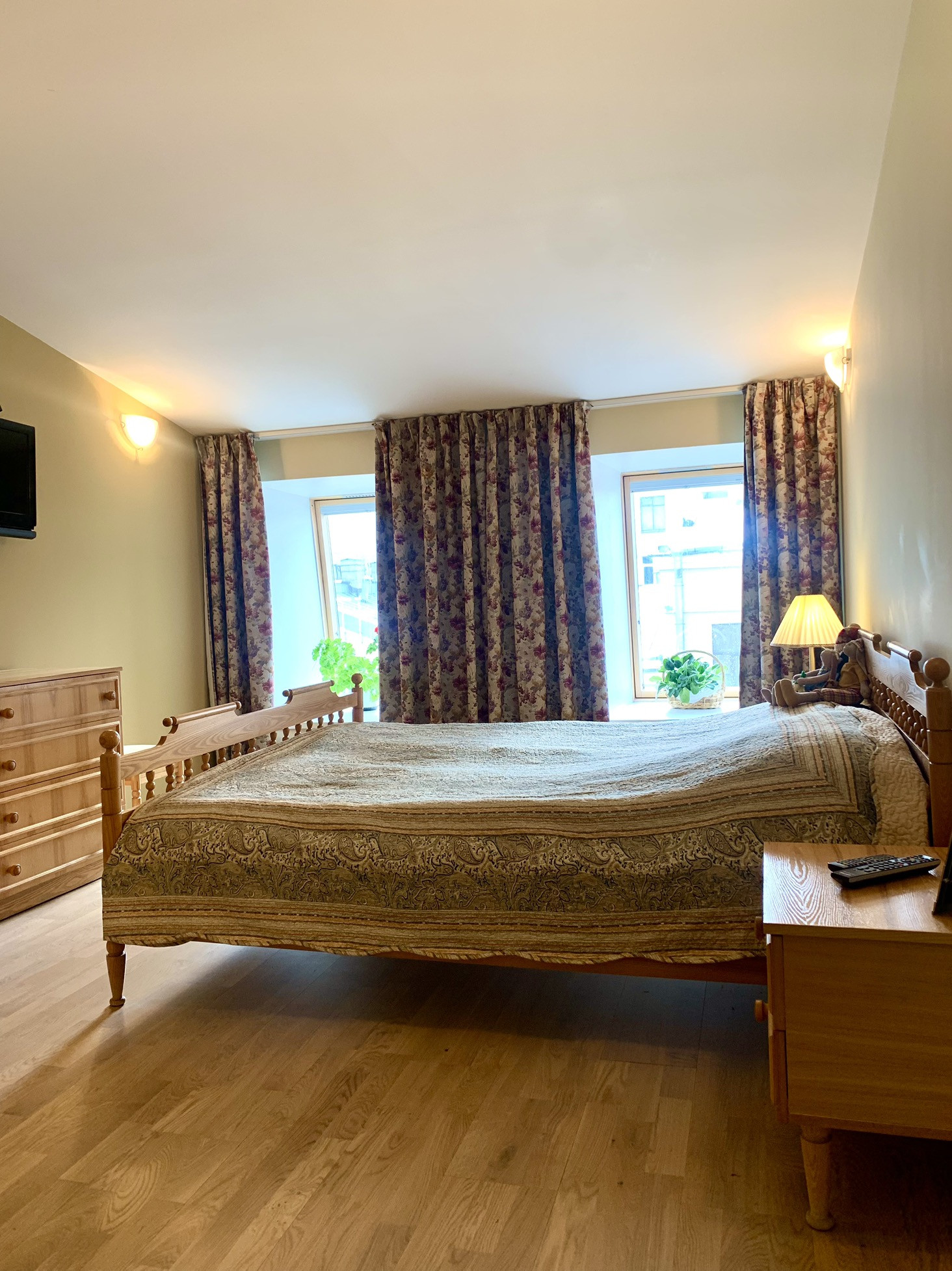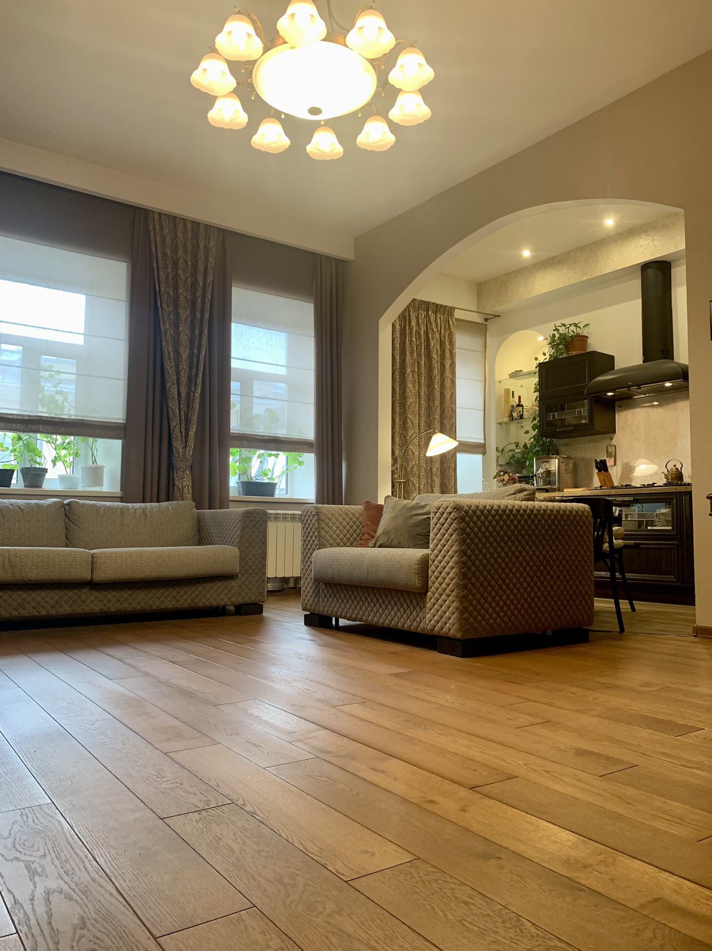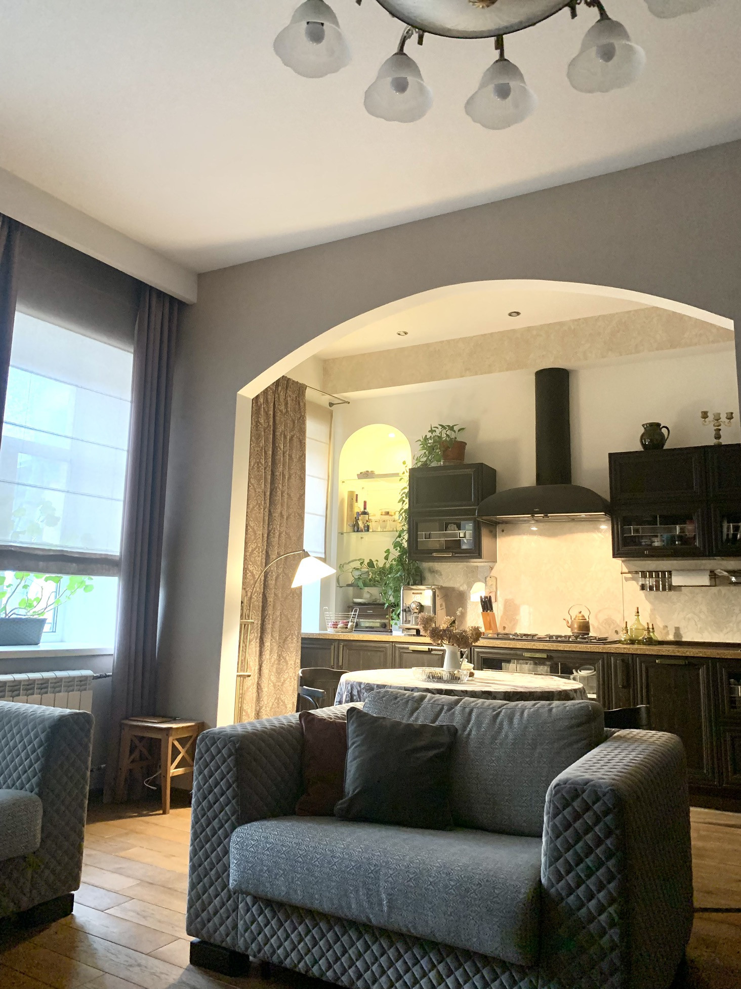 Высокие потолок, большие окна , грамотное освещение в квартире - все это создает уют и комфортное проживание.
