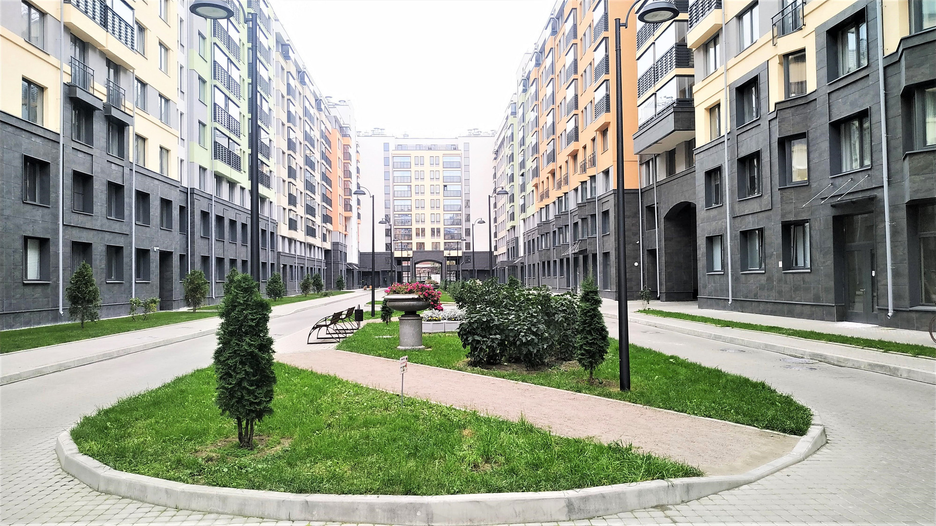 Закрытый двор без машин, охраняемая большая территория жилого комплекса.